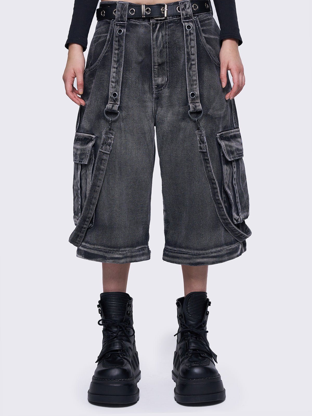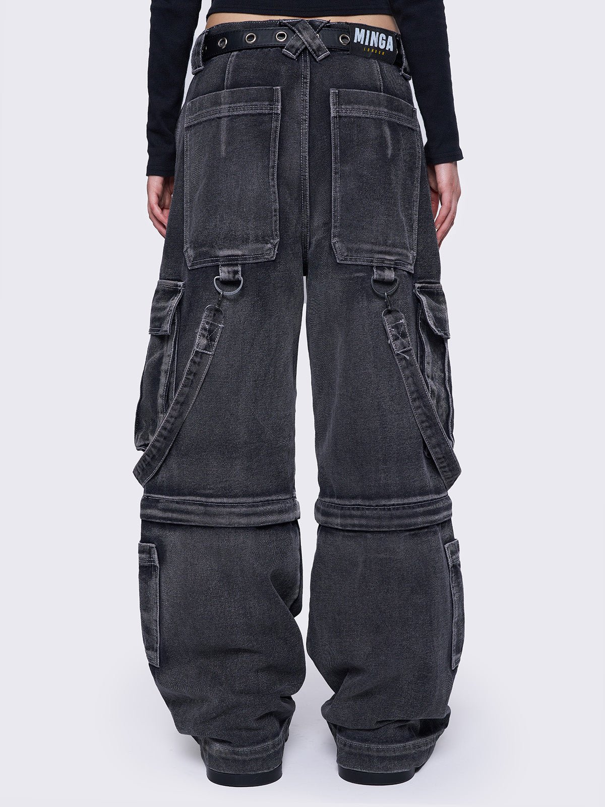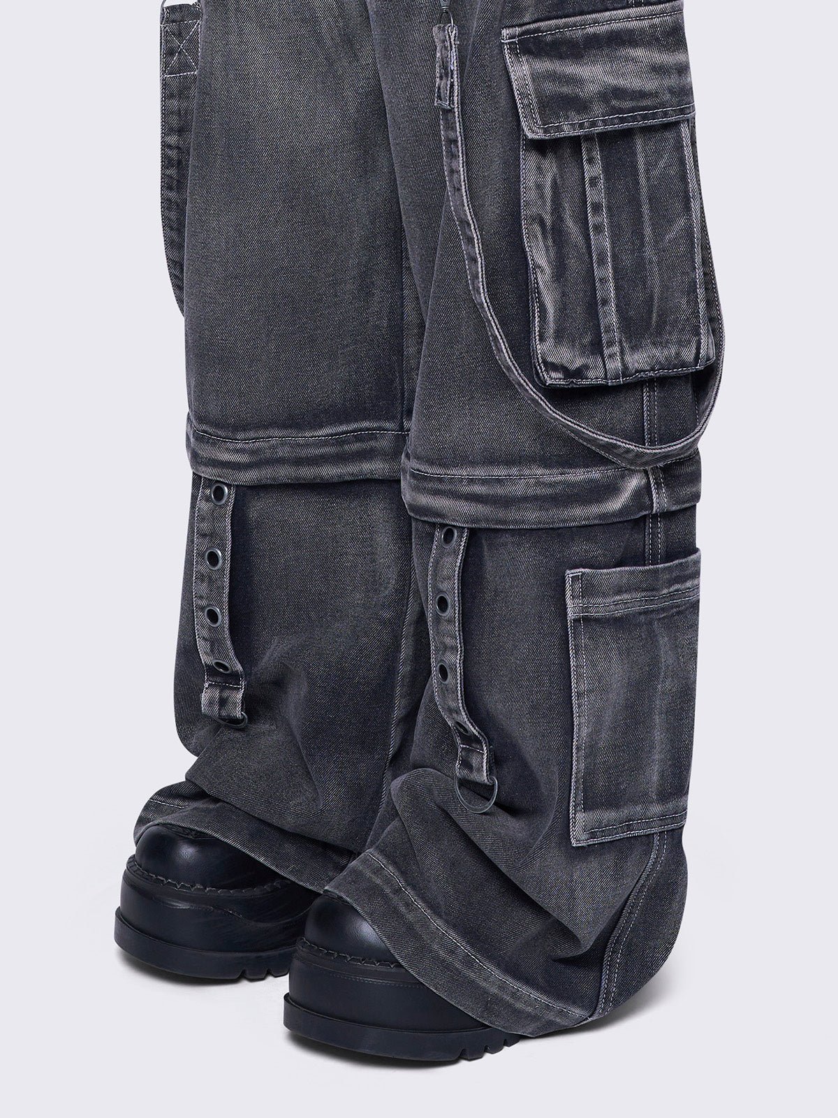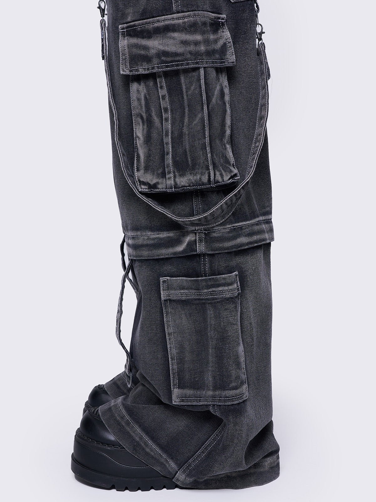 - Multi pocket cargo jeans in washed grey