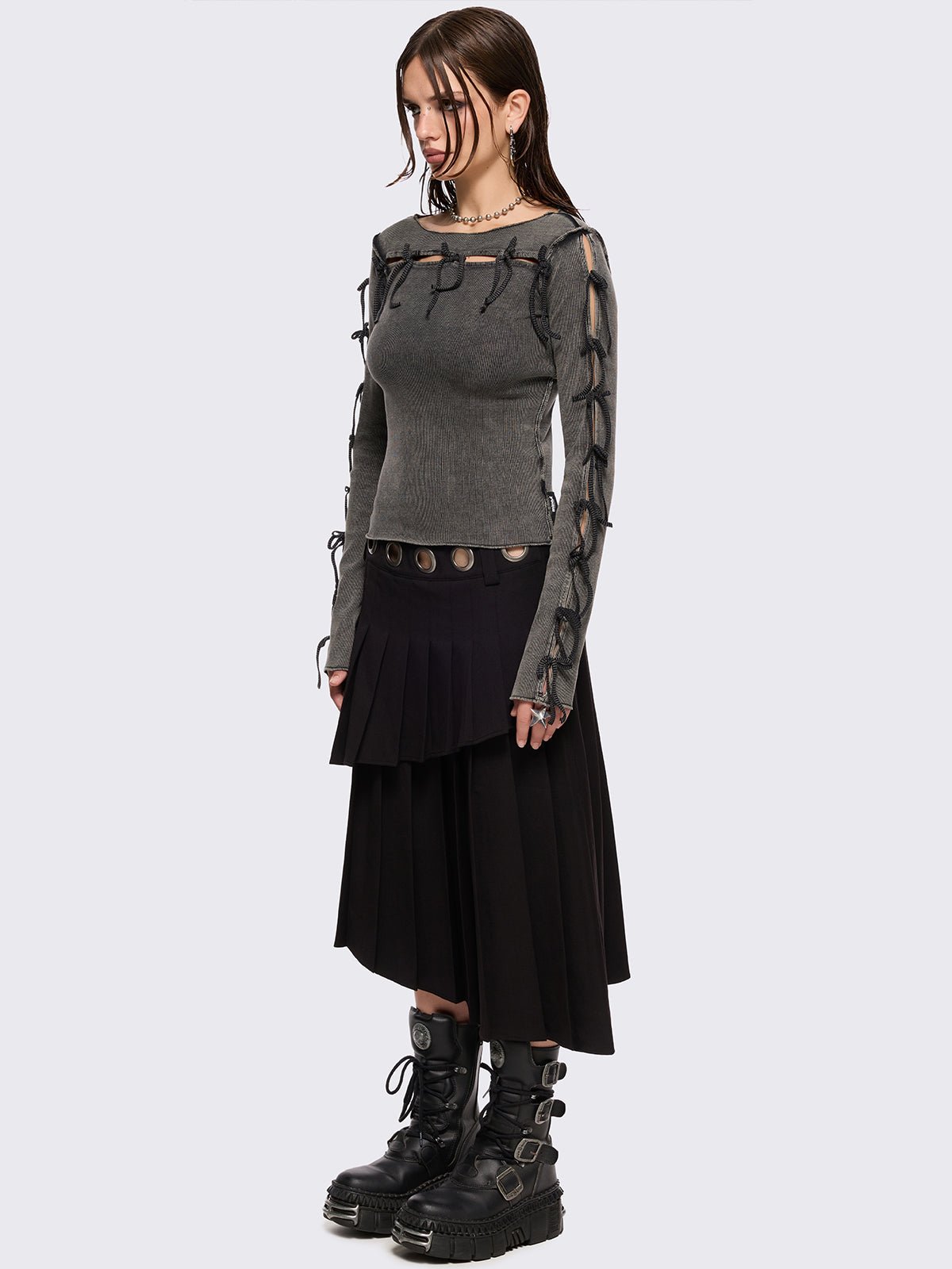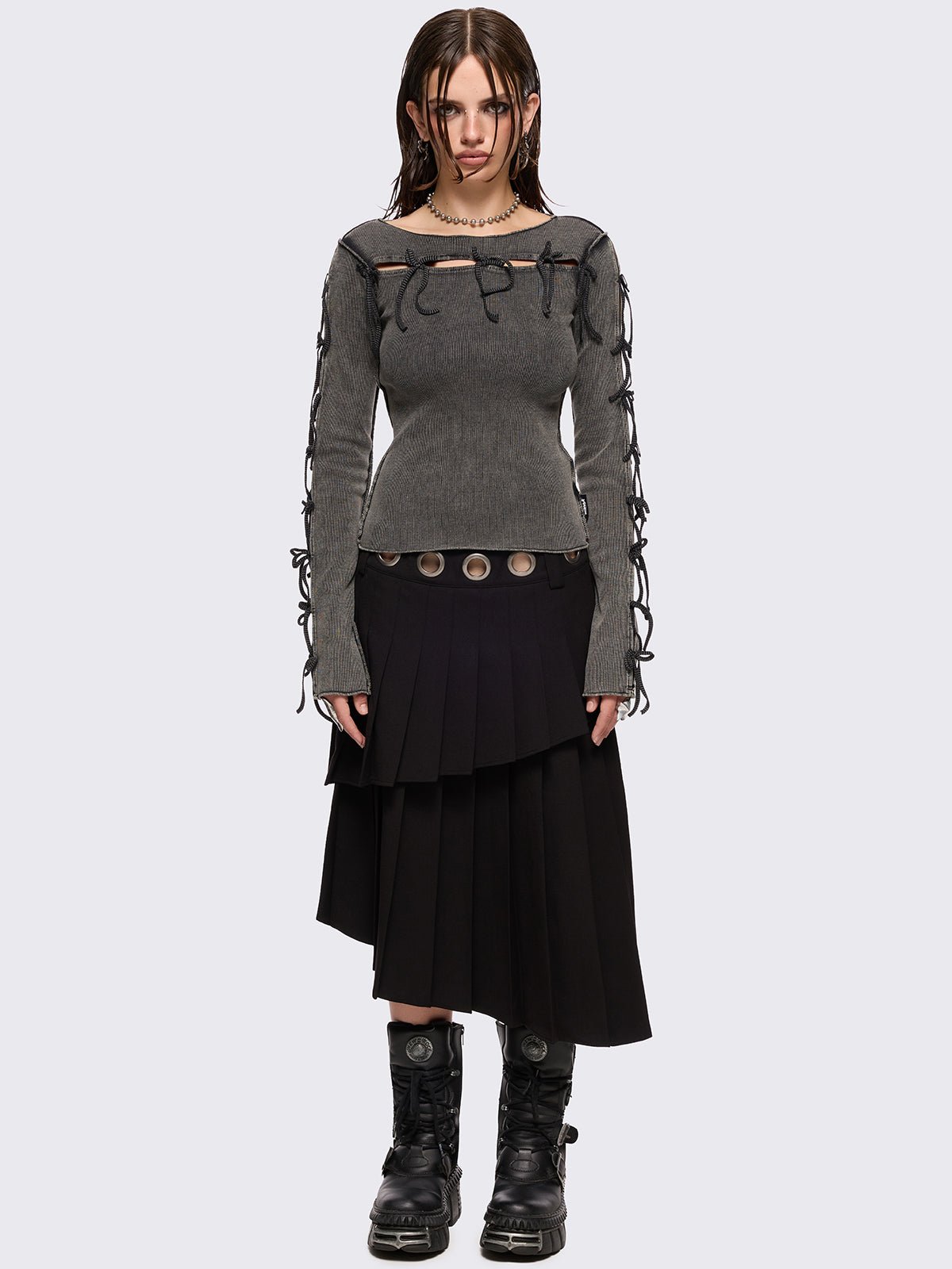 - Silver eyelet waistband