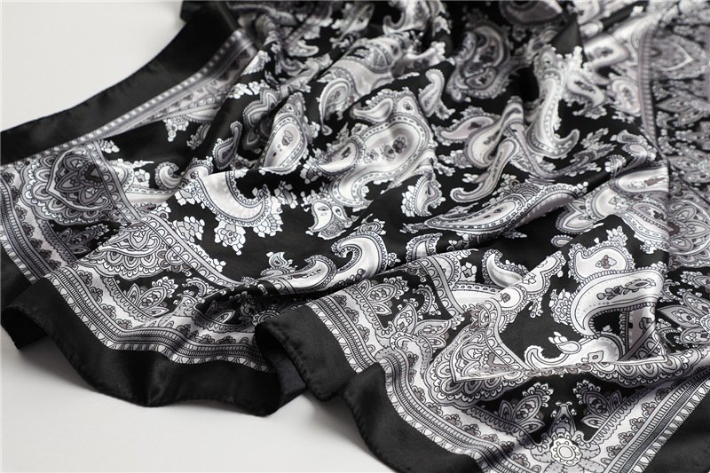 Vintage Floral Silk Scarf with Suzhou Embroidery – Black Sun Protection Head Wrap & Travel Shawl for Women