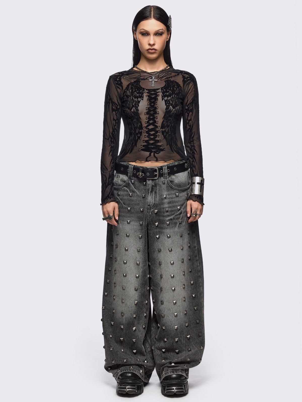 - Black mesh top
